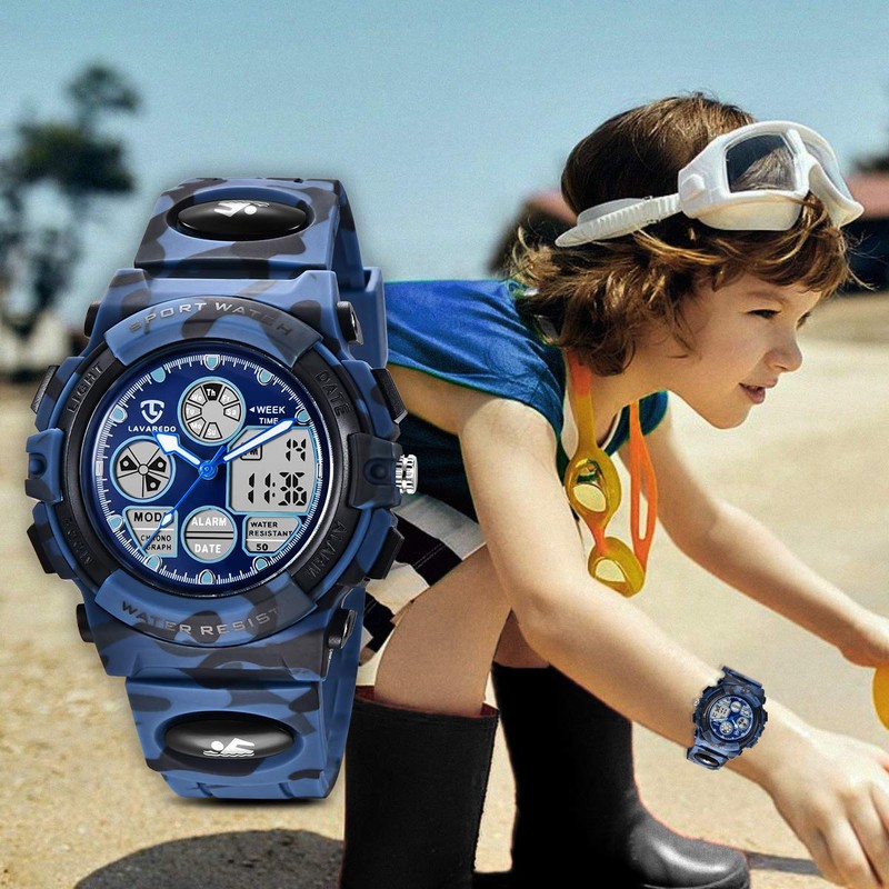 - Multifunctional Child Watch: Digital Analog Display, LED Lighting, Automatic Date, 12/24 Hours, Alarm, Stopwatch, 5 ATM Waterproof. Happy birthday and Christmas gifts for children.