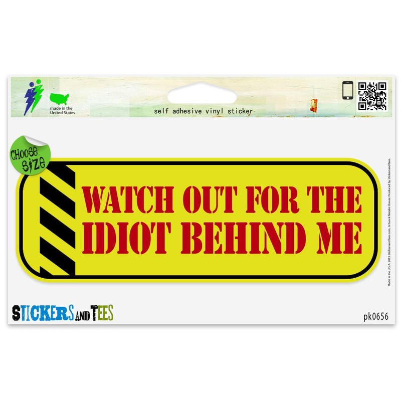 Watch Out for The Idiot Behind Me Vinyl Car Bumper Window Sticker 5" x 2"