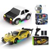 Glowing Cool Drift Car : 1:20 scale fast remote control drift car with equipped with front, rear and tail lights, let the whole Car body shine making it cooler and more attractive when driving at night. The operation of the Rc drift car is also very simple. You can easily control the drift car forward, backward, turn left, turn right, etc. You can also perform various types of drift, such as U-shaped drift, S-shaped drift, 360-degree drift, each type Drifting will bring you different fun. This i