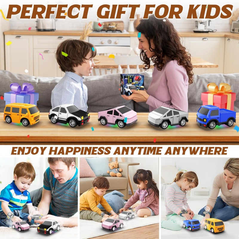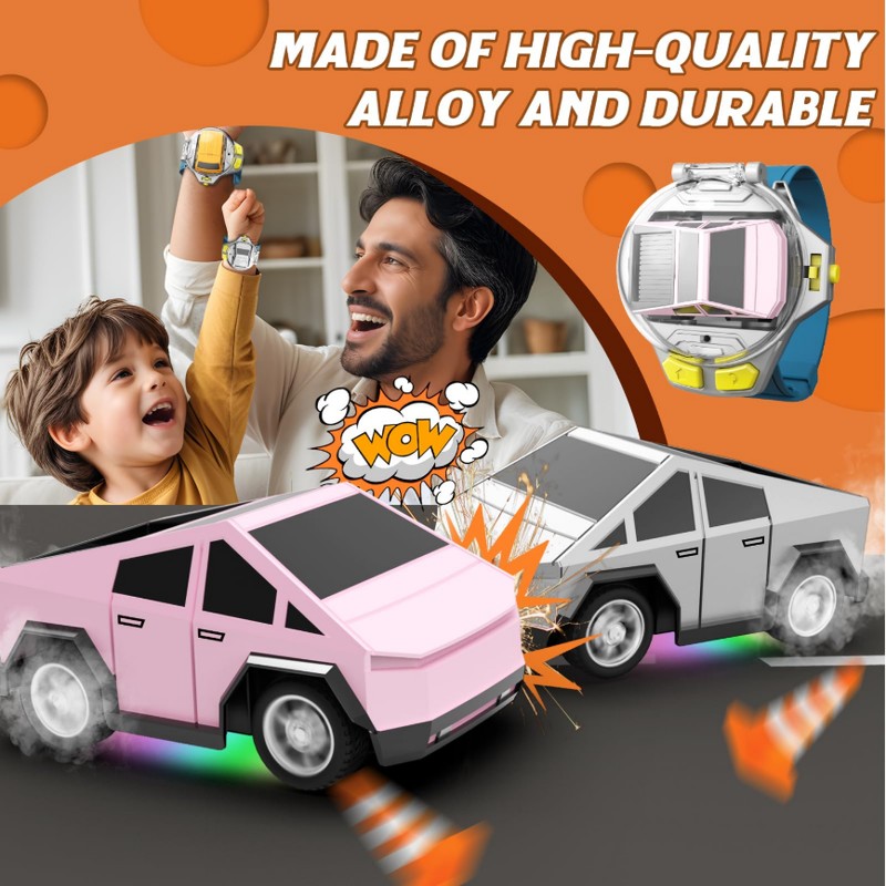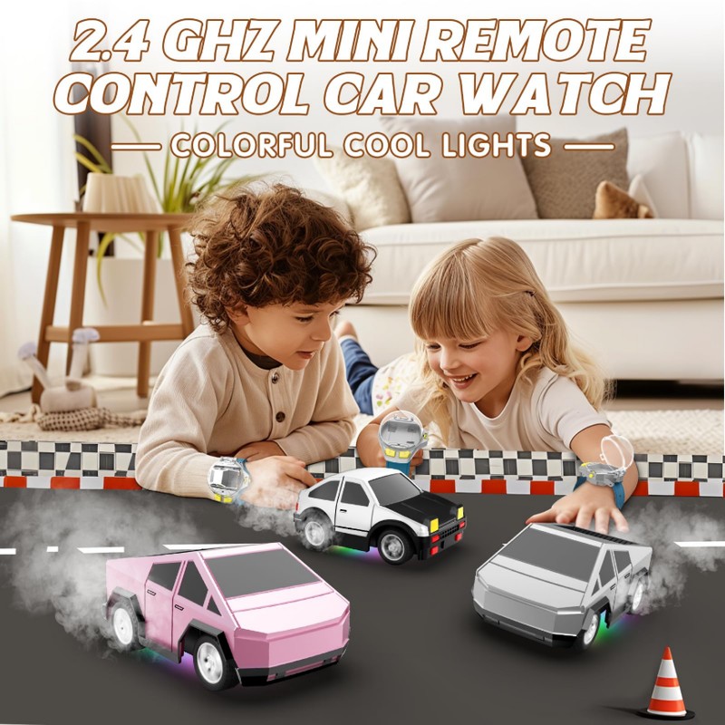 Watch Remote Control Car Toy: Built-in detachable mini rc car in the watch, a novel and innovative watch design. Remote control watch car consolidation the remote control function into the watch, the watch is to control the toy car, children can easily control two buttons to control the rc car to move back and forth or turn. Watch car has a compact body, excellent starting ability and excessive agility. Small rc car is equipped with charming lights, adding infinite fun and fantasy color to child