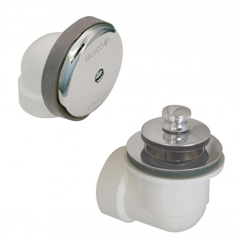 Watco's Model 601 Push Pull bath waste half kit includes a brass theft- resistant Push Pull knob, a friction ring and post, a brass Push Pull stopper, a seal (1-1/16-Inch ), a brass strainer body, a drain ell washer (1.5-Inch ), a schedule 40 PVC drain ell, a schedule 40 PVC overflow ell, a foam overflow ell washer, a 1-hole overflow plate, and an overflow plate screw. Pull knob to open the drain and push down to close it. No stopper rotation is required. This product is manufactured in compliance with ASME A112.18.2-2005/CSA B125.2-2005.