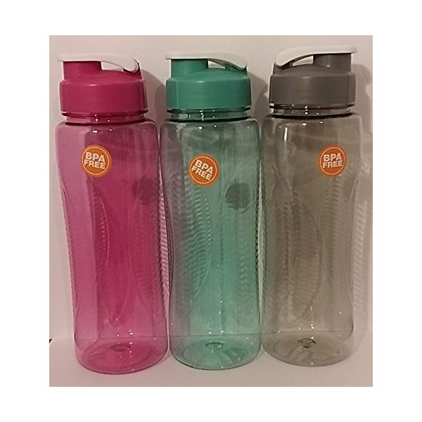 Water Bottle with Flip-top Lid, 24 OZ, (PACK OF 3) PURPLE