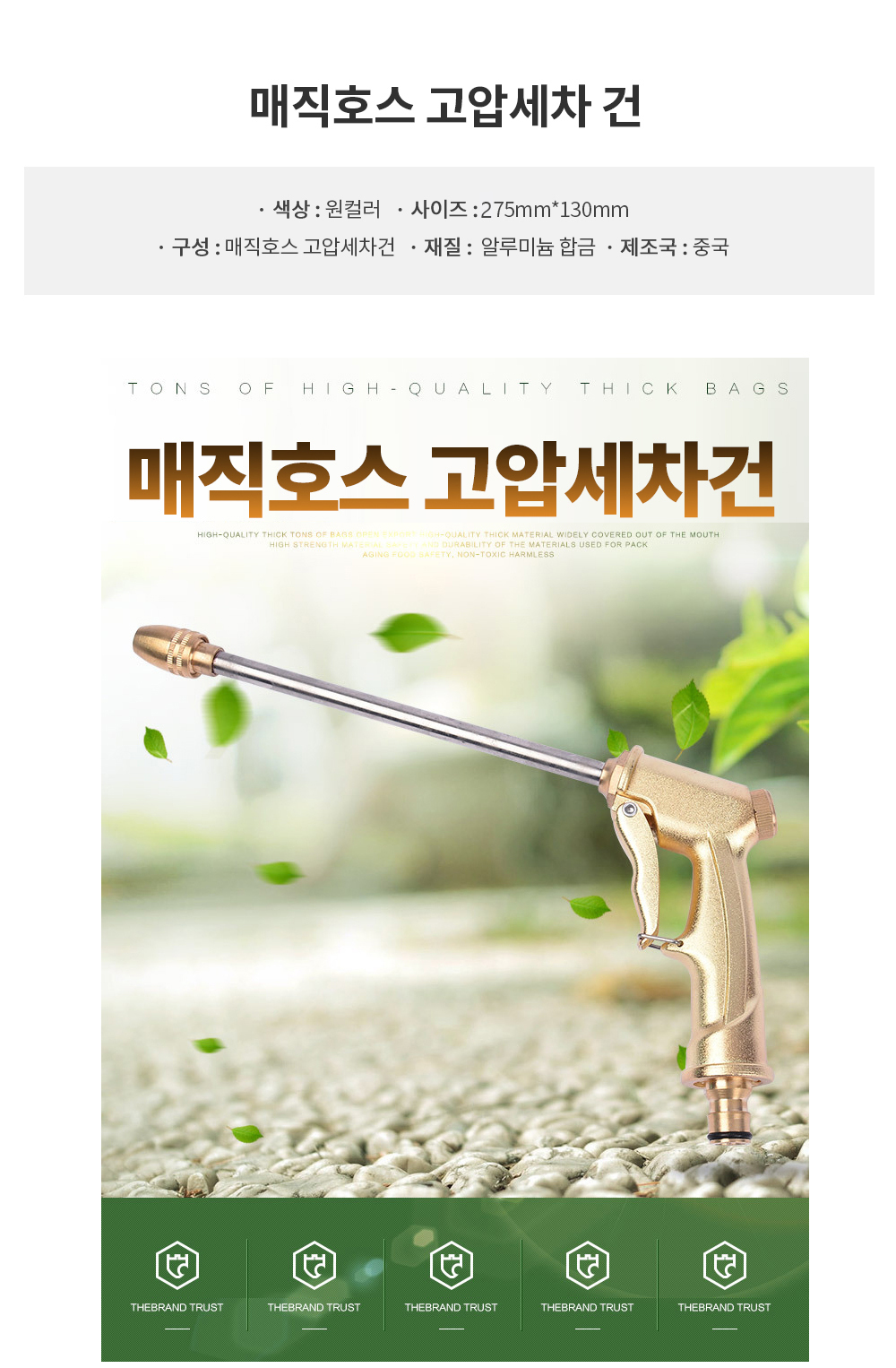 Water cleaning high pressure car wash gun metal sprayer long 1 5ea