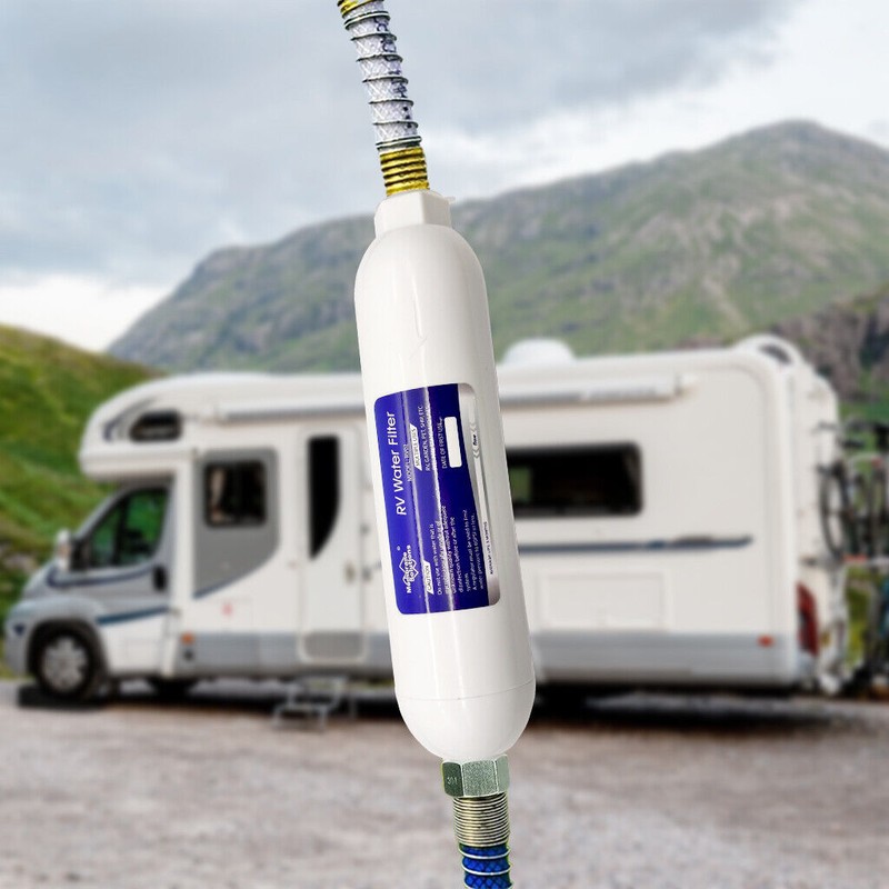 · HOSE PROTECTOR: RV inline water filters include a flexible hose protector that helps secure and protect the water supply connection from any damaging kinks. Simply screw the flexible hose protector onto the inlet side of the filter during install.