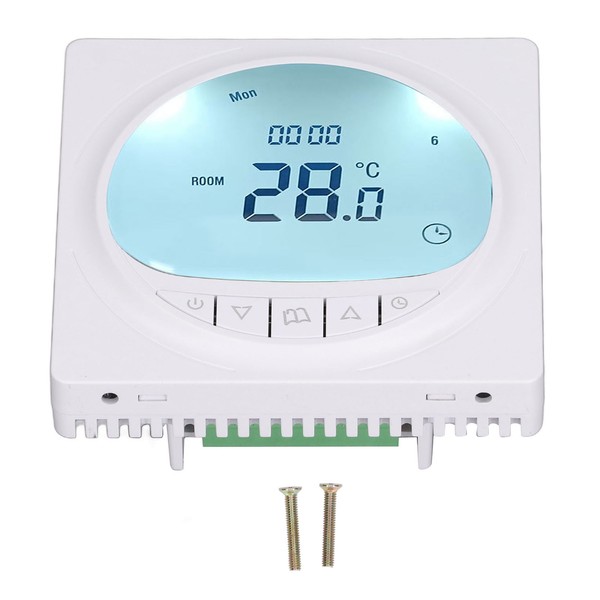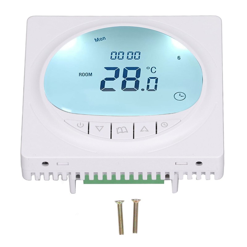 1、Smart Thermostat: This thermostat is used for water and floor heating systems, controls the running state by sensing the contrast between room temperature and set temperature. 2、Energy Saving: This temperature controller could greatly improve comfort and saves energy, can be used for living room, bedroom, dining room, hall, etc. 3、Multi Function: The system controller has manual function, programming function and state memory function, add more convenience. 4、High Reliability: Using high reliability chip, with strong anti interference ability. Adopt NTC thermistor temperature sensor for high precise control and fast data reading. 5、Easy to Read: Designed with large LCD display screen, can clearly display data, easy to read, easy to use and practical.