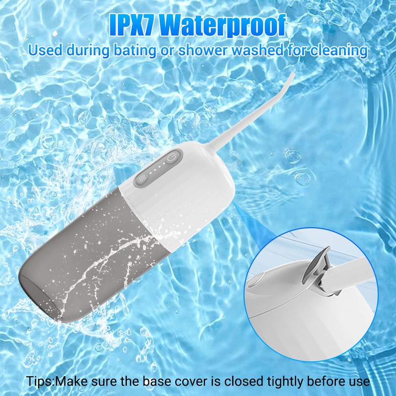 - Detachable Water Tank and IPX7 Waterproof: This cordless water flosser features a detachable water tank, which is easy to inject water and bring convenience to your cleaning. In addition, IPX7 super waterproof makes it safe to use even in the shower.