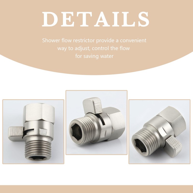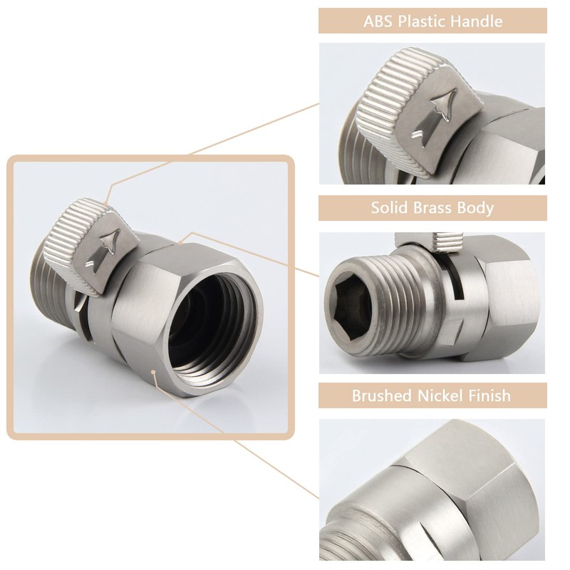 APLusee Shower Head Shut Off Valve, Solid Brass Water Flow Restrictor with Adjustable Lever, Brushed Nickel