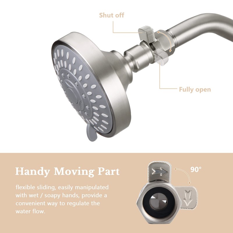 - NEAT STYLE & SIMPLE TO INSTALL, warm brushed nickel appropriates with existing shower fixtures perfectly. Installed between the shower arm and the shower head that can be used.