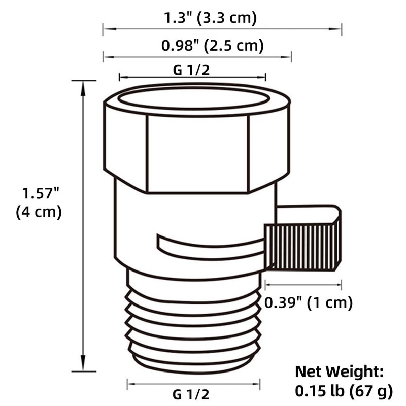 - UNIVERSAL CONNECTION, G 1/2 Male and female adaptor fits well on most standardized shower heads / pipes. Overall size: 1-5/16" x 1" x 1-9/16"(33 x 25 x 40mm).