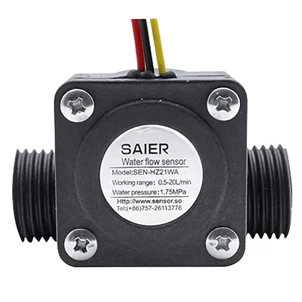 The water flow sensor has a high quality Hall effect element and is encapsulated with adhesive to prevent water from entering.