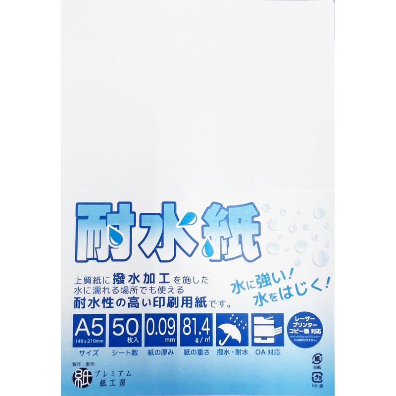 Water Resistant Paper, A5 Size, 50 Sheets Included, Compatible with Laser Printers