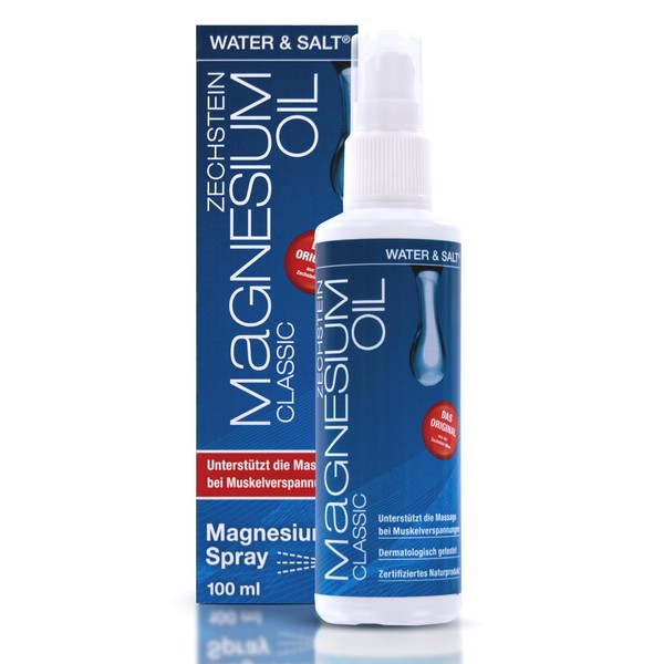 Water & Salt Water & Salt? 100ml Classic Magnesium?l Zechstein Magnesiumspray [DERMATOLOGISCH GETESTET] - Magnesium ?l Magnesiumspray - Zertifiziertes Naturprodukt - Magnesium Oil frei von Zusatzstoffen