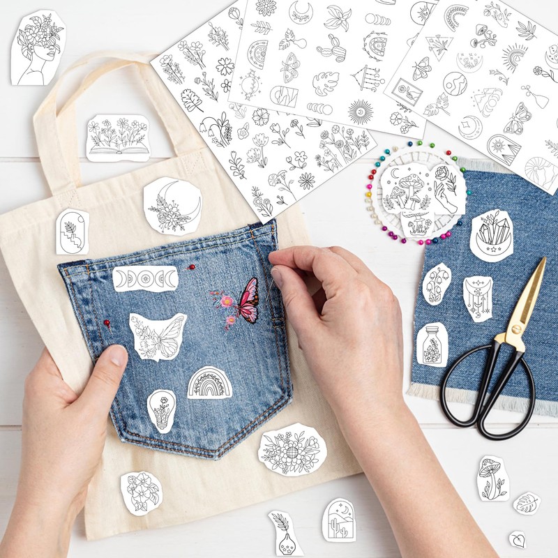 - Straightforward Application: The application process is a breeze. Choose your desired pattern, carefully cut it out, and remove the protective film. Place the sticker on the garment you want to embroider, and you're ready to kickstart your creative journey. After completing your embroidery, achieving impeccable results is as simple as cleaning the embroidered area with water.