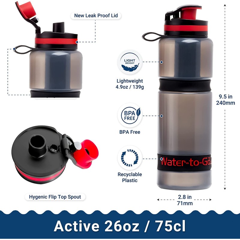 WATER TO GO Active BPA-free reusable water purifier sports bottle with leakproof filter - perfect for travel, camping, hiking, biking, cycling and survival in emergencies (75CL, RED)