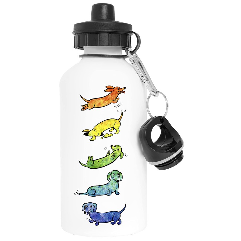 Watercolour Dachshunds Aluminium White Water Bottle with Screw Cap White Water Bottle with Screw Cap