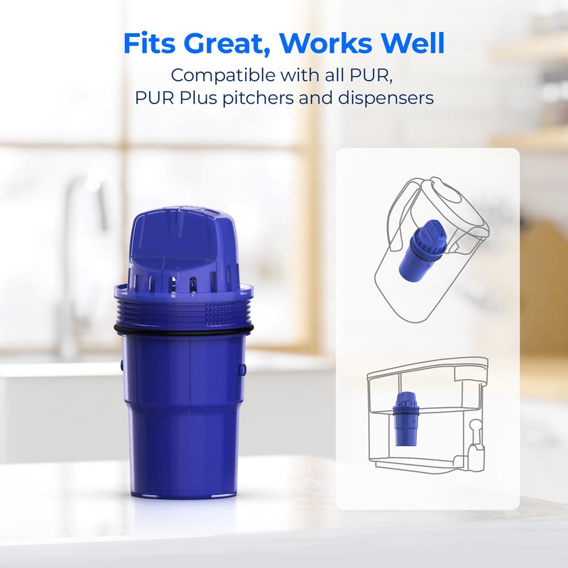 - [Fast and simple to install] The water filter for pur dispenser adopts a more humanized design at the top, is convenient to take and can be installed within 3 seconds. The water filter is perfectly fit with your pitcher and has a higher cost performance.