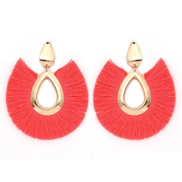 Waterdrop Shaped Tassel Earrings for Women (Orange 1)