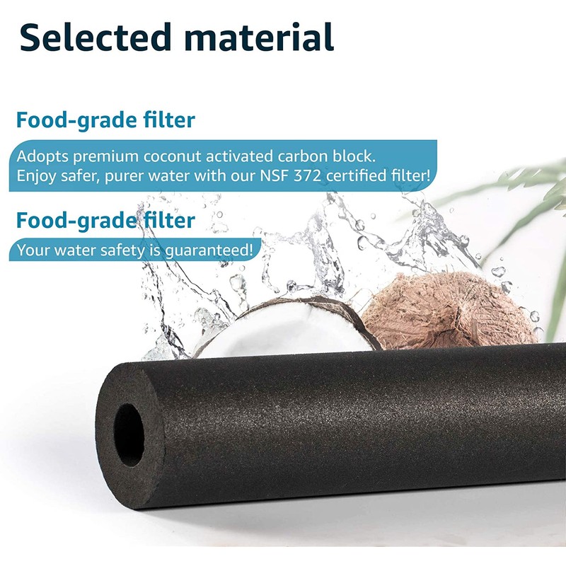 - Selected filtration material: Our dedicated R&D team works day and night to ensure our filters provide your family with the purest, safest water anywhere in the world. By harnessing the power of natural active coconuts sourced from Sri Lanka, we adopt the coconut activated carbon block that ensures you get nothing but the best when you choose our products.