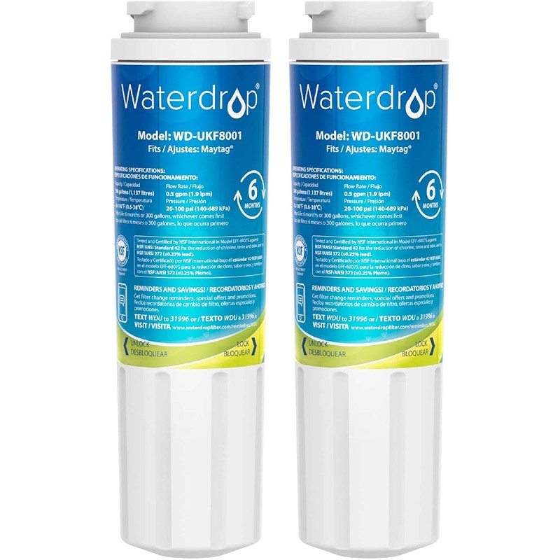 Waterdrop UKF8001 Refrigerator Water Filter, Compatible with Whirlpool EDR4RXD1, UKF8001AXX-750, UKF8001AXX-200, 4396395, 469006, Filter 4, PUR, Puriclean II, Pack of 2 (package may vary) by Waterdrop Store