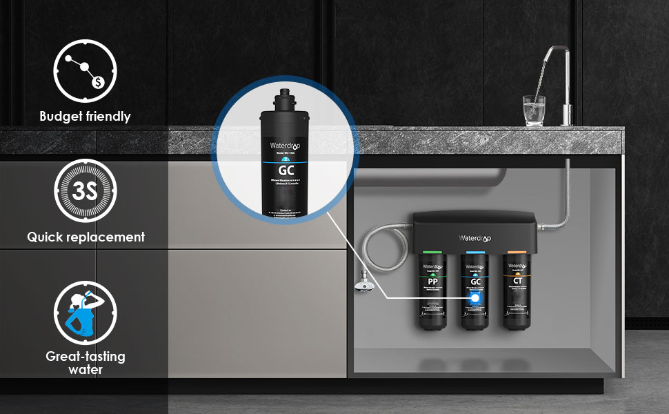 - 【Extended service life】 The granular activated carbon filter provides you with 8-12 months of clean filtered water. Actual result varies according to the local water quality. To get the best filtration experience, please replace the filter according to recommended service life.
