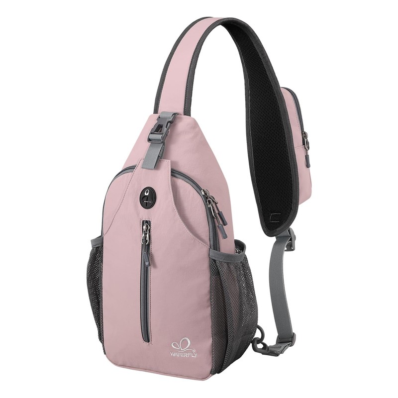 WATERFLY Sling Backpack Sling Bag Shoulder Backpack Shoulder Bag Adjustable Backpack Strap Hiking Chest Backpack for Men and Women, pink