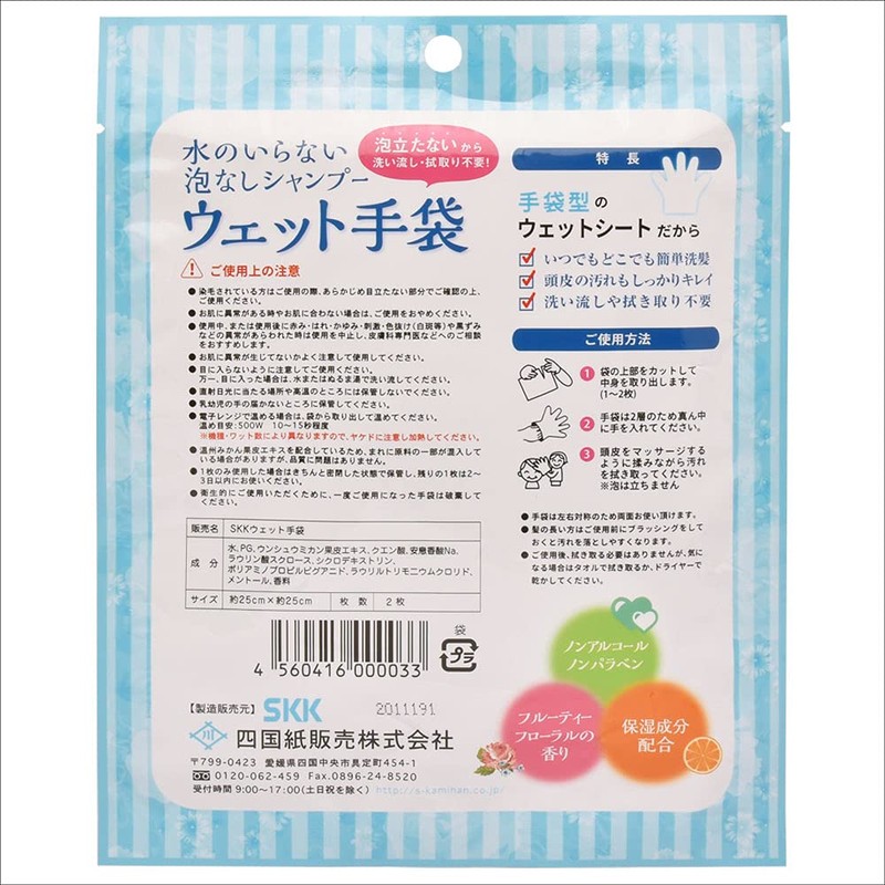 - Gloves shaped shampoo sheet. Provides a clean scalp environment for those who can't take a bath every day. In a disaster situation where water is not available. For emergency preparedness supplies