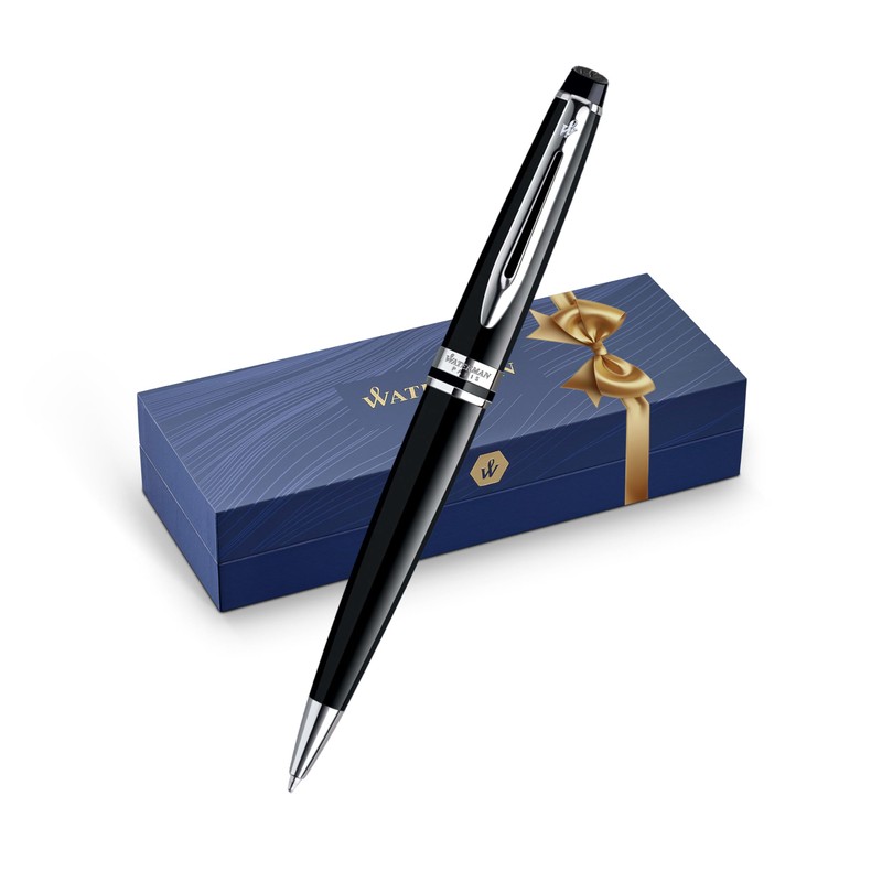 Waterman Expert Ballpoint Pen, Gloss Black with Chrome Trim, Medium Tip, Blue Ink, Luxury Pen in Gift Box - Supreme Writing Comfort, Signature Style, Polished, Professional