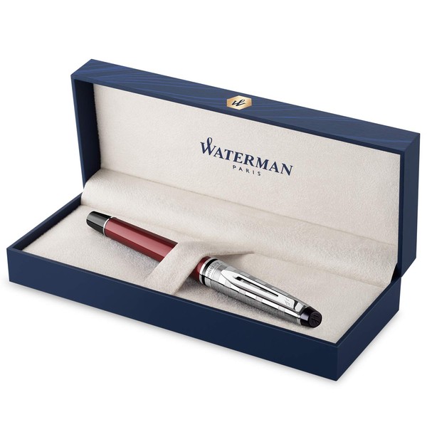Waterman Expert Deluxe Rollerball Pen | Dark Red with Chiselled Cap | Fine Point | Black Ink | Gift Box