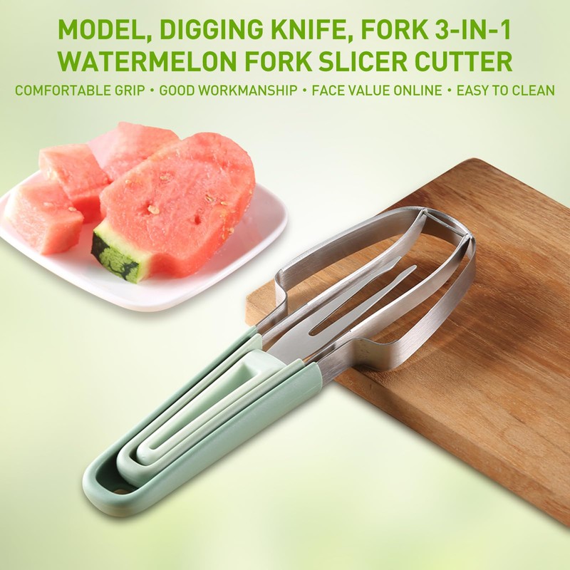 3-in-1 upgraded stainless steel fruit cutter watermelon knife meets your needs for three utensils with one item, making it versatile and saving you money, space, and time compared to conventional single tools!
