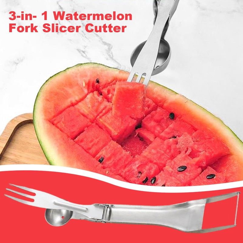 Watermelon Cutter - Stainless Steel Fruit Cutting Tool | Multifunctional Watermelon Cutter with Fork Kitchen Gadget for Meal Prep Cooking Picnic Fruit Salad