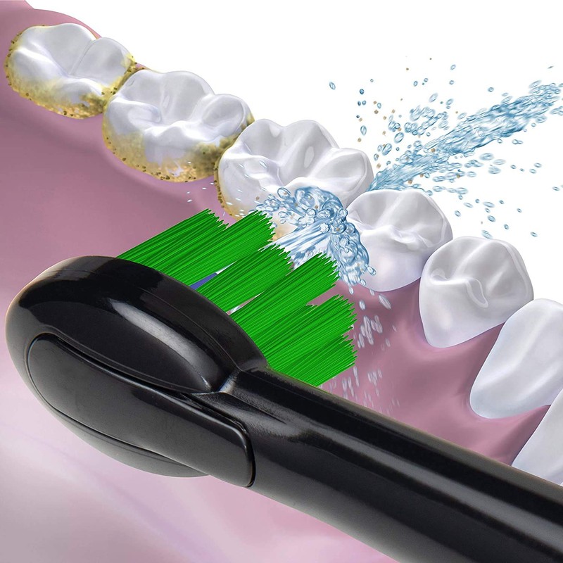 • The soft, high-low bristles pattern, gently brushes while the water flosser removes plaque and debris from between teeth and below the gumline