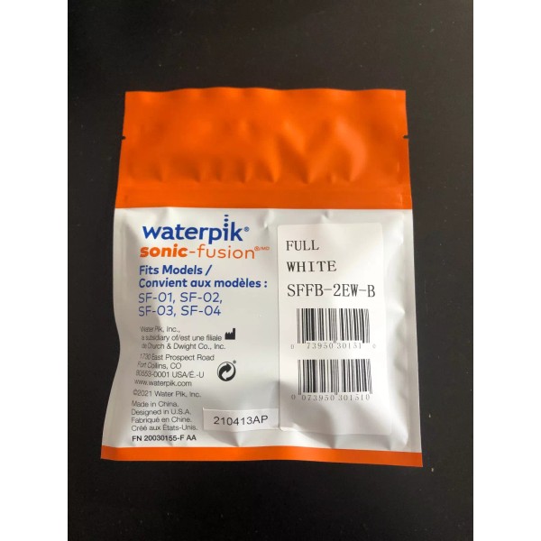 Brush and floss at the same time with the patented Waterpik Sonic-Fusion flossing brush heads. The soft, high-low bristle pattern thoroughly cleans tooth surfaces while the built in water flosser cleans between teeth and below the gumline where brushing can't reach. 2 color-coded replacement brush heads are included per package. Compatible with Waterpik Sonic-Fusion units. Replace every three months.Waterpik Sonic-Fusion Replacement Flossing Brush Heads FULL WHITE Genuine