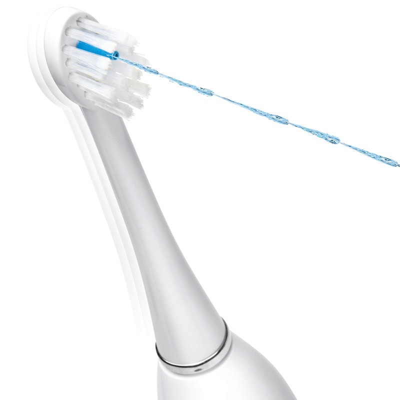 - The soft, high-low bristles pattern, gently brushes while the water flosser removes plaque and debris from between teeth and below the gumline.