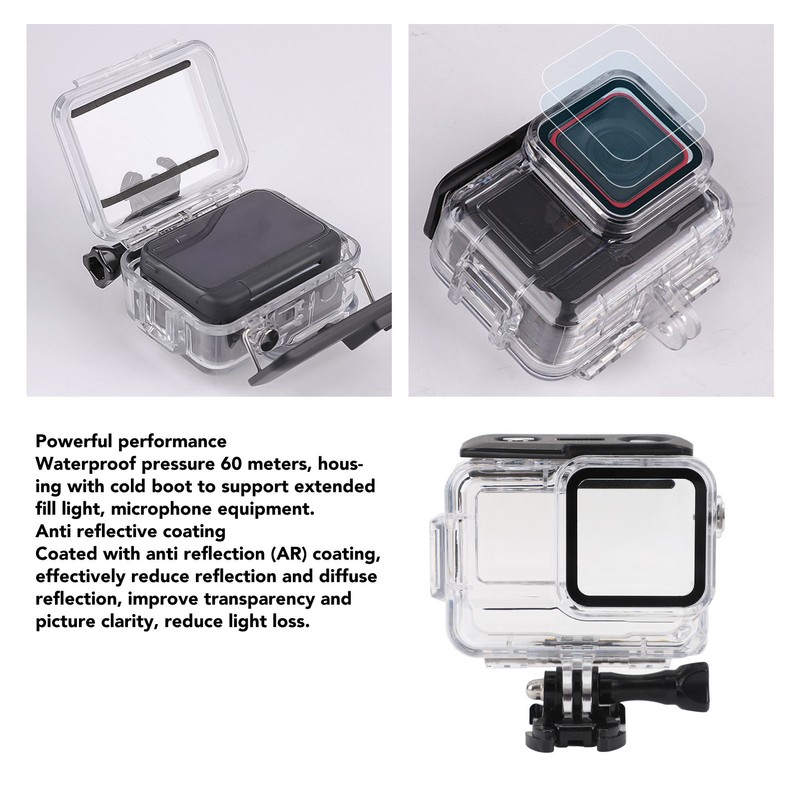 1、POWERFUL PERFORMANCE: Waterproof up to 60 meters, the housing features a cold shoe mount for expanding lighting and microphone devices, enhancing the versatility for Insta360 Ace. 2、ANTI REFLECTIVE COATING: Coated with anti reflective (AR) coating, the housing effectively reduces reflections and diffractions, improving transparency and image clarity while minimizing light loss. 3、MULTI FUNCTIONALITY: The optical tempered glass lens not only provides guard but also offers anti dust, anti fingerprint, and anti scratch properties, keeping the lens clean and clear. 4、HIGH TRANSPARENCY: The optical tempered glass lens boasts excellent light transmission, with nearly 100 percent transparency, ensuring bright and clear footage. 5、LIGHTWEIGHT AND THIN DESIGN: With its ultra thin design, this housing is lightweight and easy to carry, perfect for outdoor use.