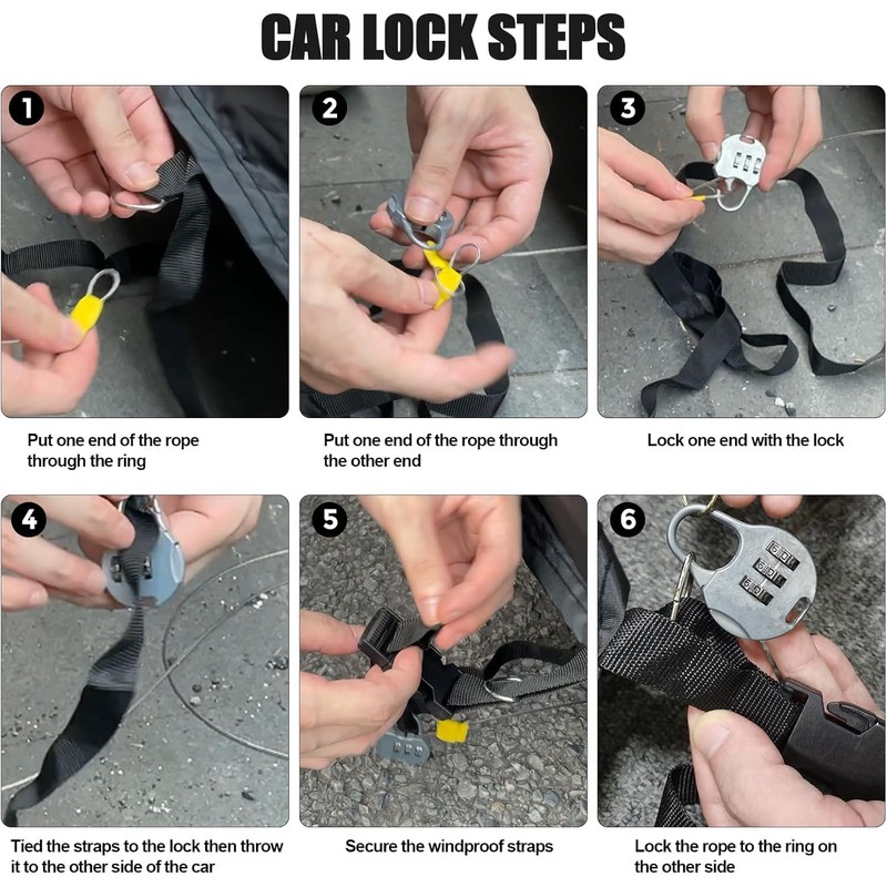 - 3 Windproof Details: windproof buckle, windproof strips and elastic belt on the tail edge, so that your car cover will not be blown away even in the face of strong wind, which is very good to protect your car