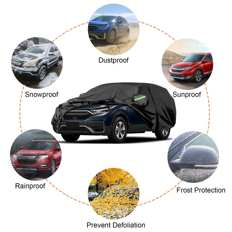 - Upgraded Material: More Waterproof: Made of 210T high-density material, which is thicker, more durable and more waterproof than 190T. The water pressure is 1500, which is enough to deal with most rain and snow weather, and can be placed outdoors for a long time.Inner thicker cotton backing protects your car's painting