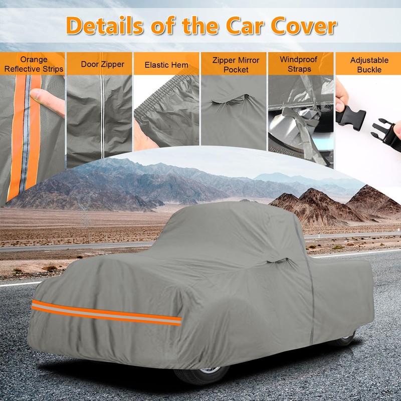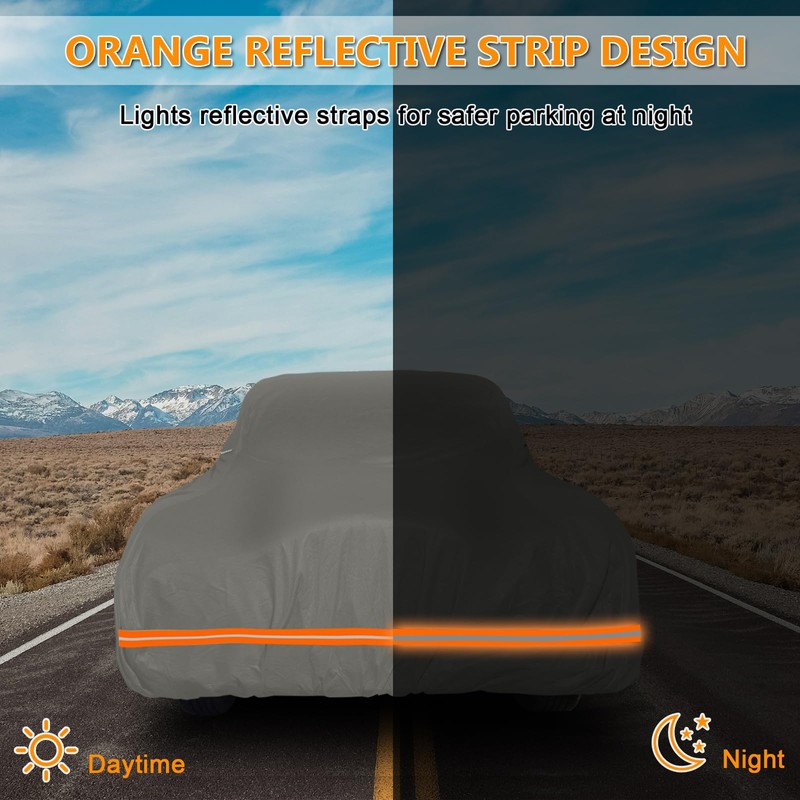 - Reflective Warning Strips: the car cover has 3 reflective warning strips from the front to the rear of the car, this design improves visibility at night, reducing the risk of collisions and ensuring your car stays safe