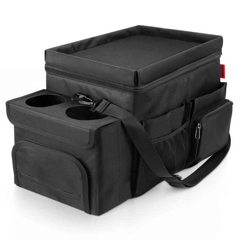 - [Cooler Compartment] Keep your drinks and snacks cool and refreshing during long drives with the built-in cooler compartment of the INFIVITA Car Organizer. It has a 100% waterproof lining, and you can add some ice cubes to make it even cooler.