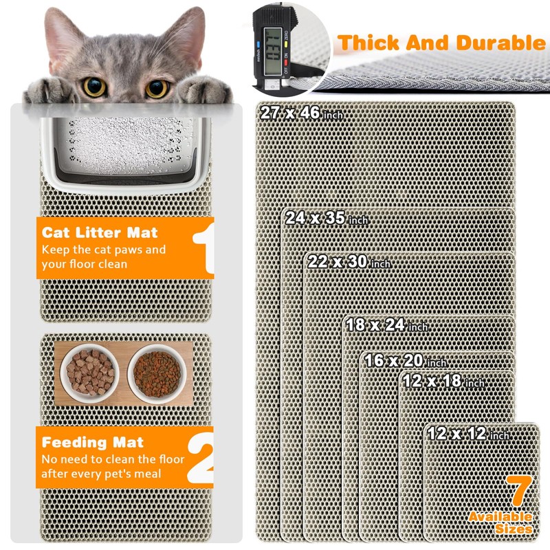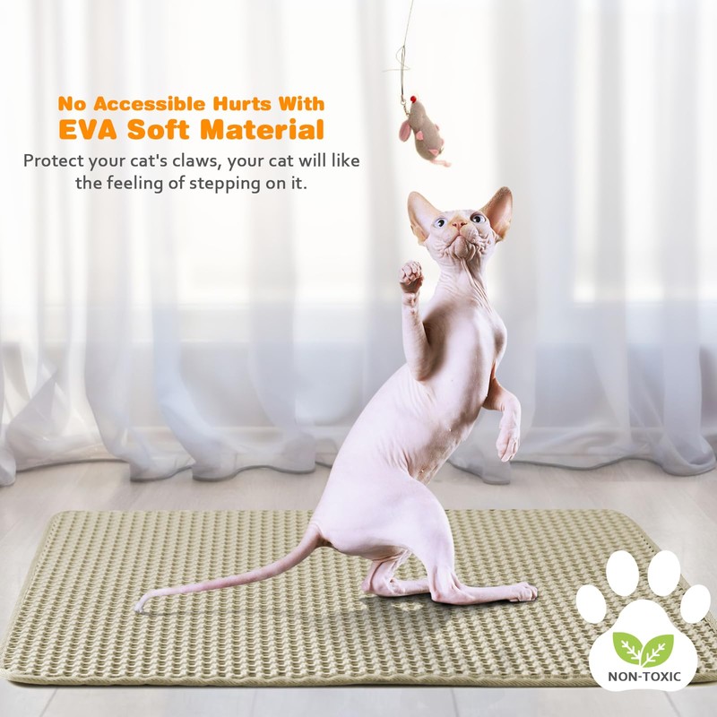 Waterproof Cat Litter Mat, Double Layer EVA, Odor-Free Large Grid, Urine Proof, Easy Cleanup (Khaki, 12 x 12)