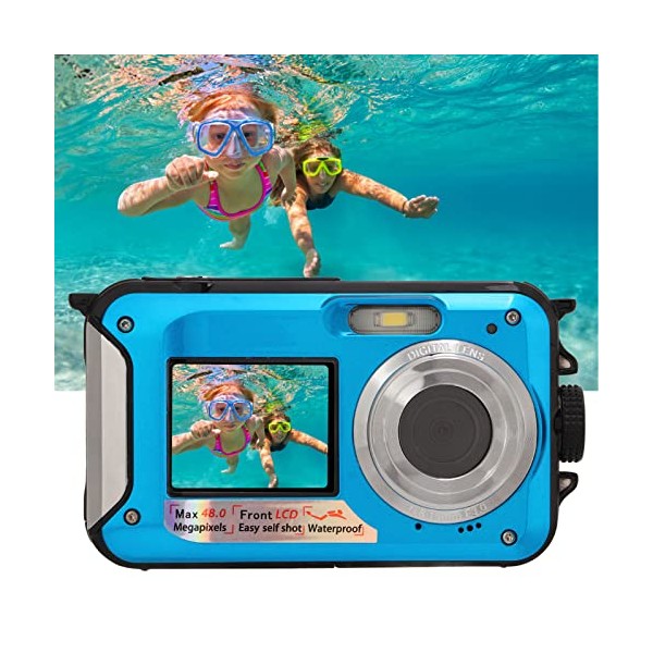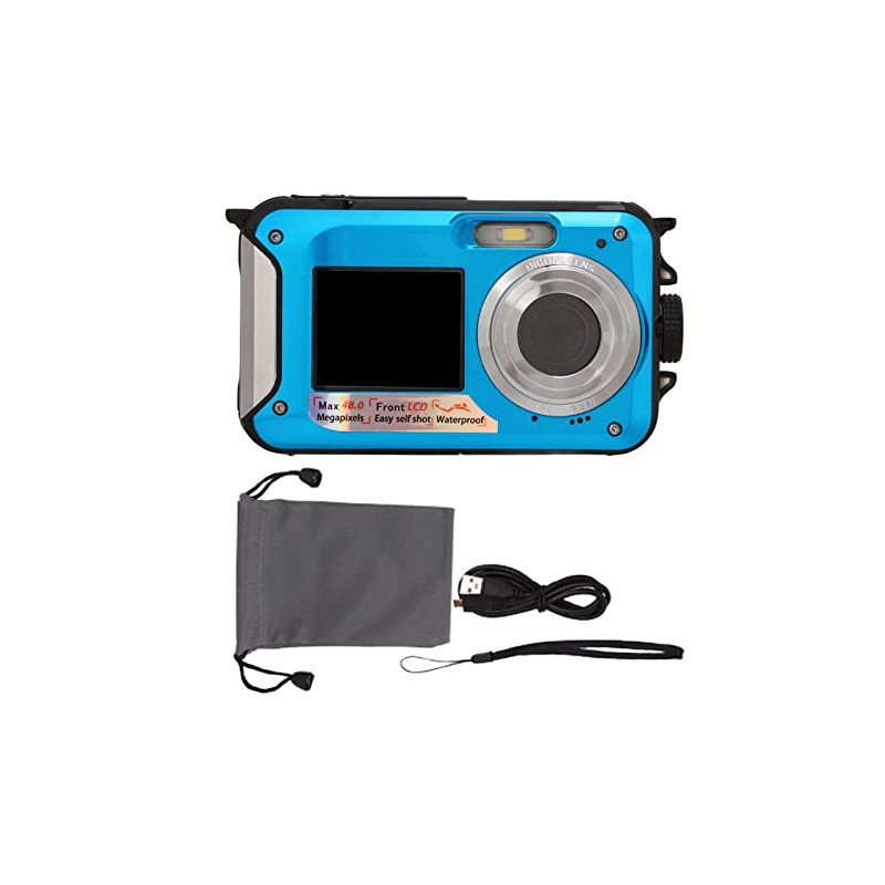 Waterproof Digital Camera,Full HD 2.7K 48MP 10ft Underwater Camera Dual Screens Selfie Waterproof Digital Camera,Compact Underwater Camera for Snorkeling Video Recorder Beginners(Blue)