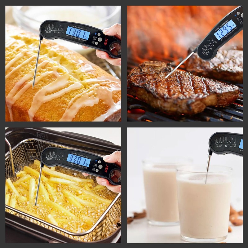 - Powerful:Easily switch between ℃ and ℉, the wide and bright LCD display with backlight makes it easy to read the temperature even when cooking outdoors or at night. Easy to calibrate and beautifully packaged, it makes an ideal gift for cooking or grilling enthusiasts, allowing you to cook mouth-watering meals effortlessly.