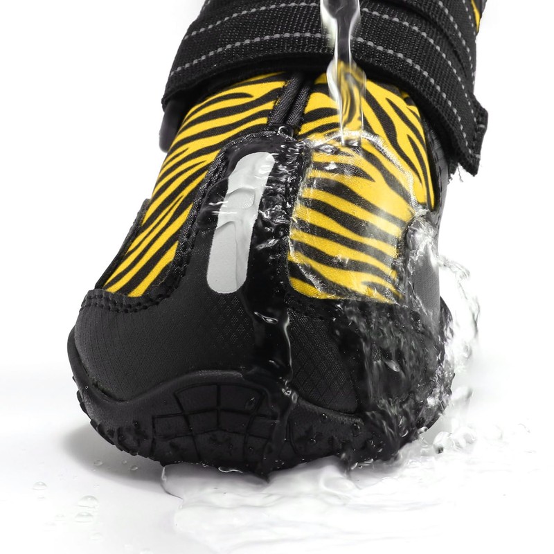 Made from breathable, water-repellent fabric, these boots keep your dog’s paws dry and warm in rain or snow. While not intended for deep water, they are perfect for everyday walks, shielding against heat and cold conditions.