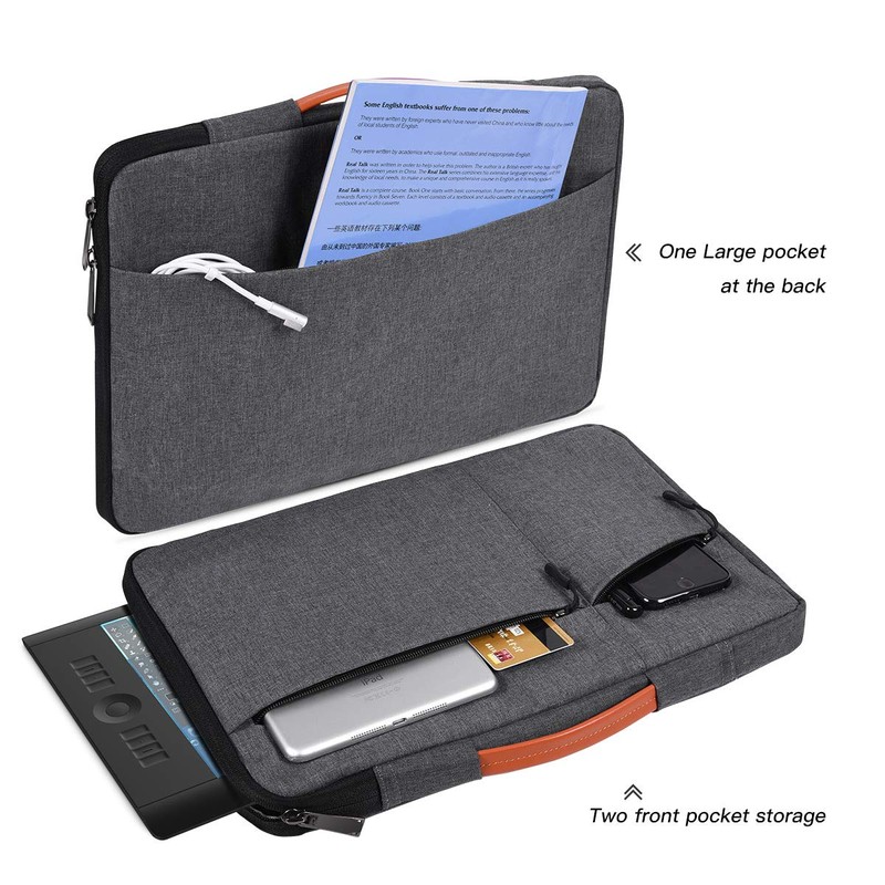 - 【Water Resistant &Slim Lightweight】The drawing tablet sleeve made of high-quality waterproof Canvas fabric, which obstructs water and vapor effectively. Don't worry about your tablet and accessories splashing water or rain. Super slim and lightweight, it can easily be transported inside another bag, backpack or briefcase.