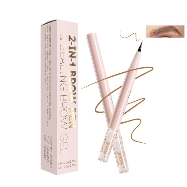 Waterproof Dual-Ended Brow Pencil & Clear Gel – Precision Tip for Natural-Looking, Defined Eyebrows with Microblading Effect(Blonde)