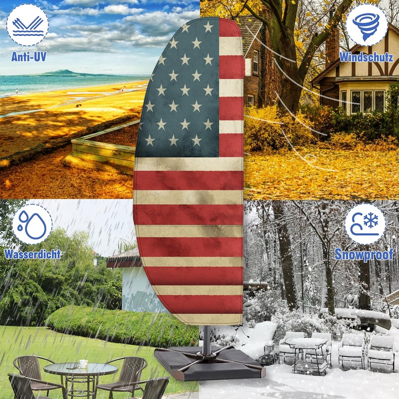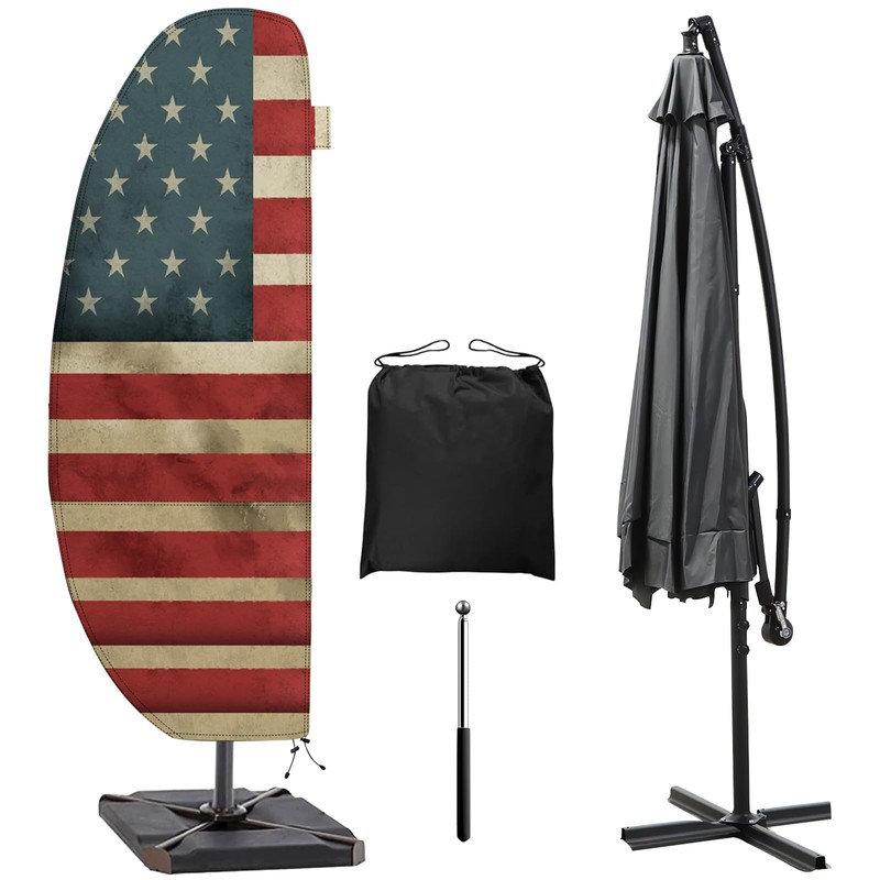 Waterproof & Dustproof Outdoor Umbrella Cover Camping Garden Offset Banana Parasol American Flag Cover Fits Cantilever Offset Umbrella (Fits Offset Umbrella 12-14 Feet Dia)