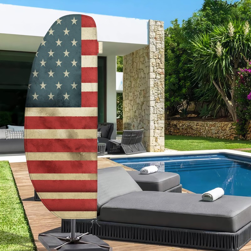 - 【Retro And Nostalgic Design】 This American flag design patio offset umbrella of this cover having a classic, timeless aesthetic that evokes a sense of nostalgia and charm. The design is characterized by intricate details, muted colors, and a sense of history that adds depth and character to the patio offset umbrella.