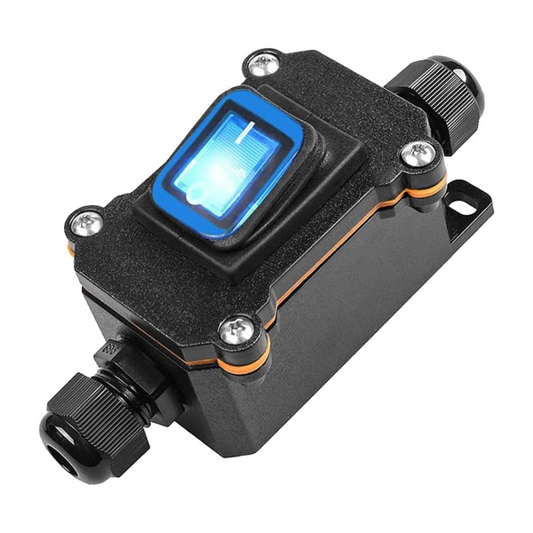 • Product features: voltage and current: 12V-24V IP67 waterproof cable switch; contact type: DPST; with blue LED light; it cord switch can handle 30 A high current. Wiring method: screw terminals. This electric outdoor switch can be widely used for electrical high-performance devices and electrical outdoor devices.