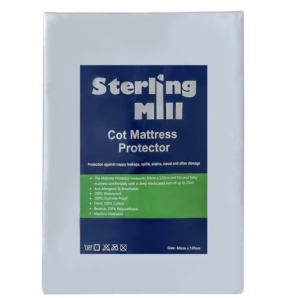 - 100% Waterproof – The baby cot mattress protector measures 60cm x 120cm with breathable internal polyurethane membrane which blocks all types of liquid such as urine, sweat & spills