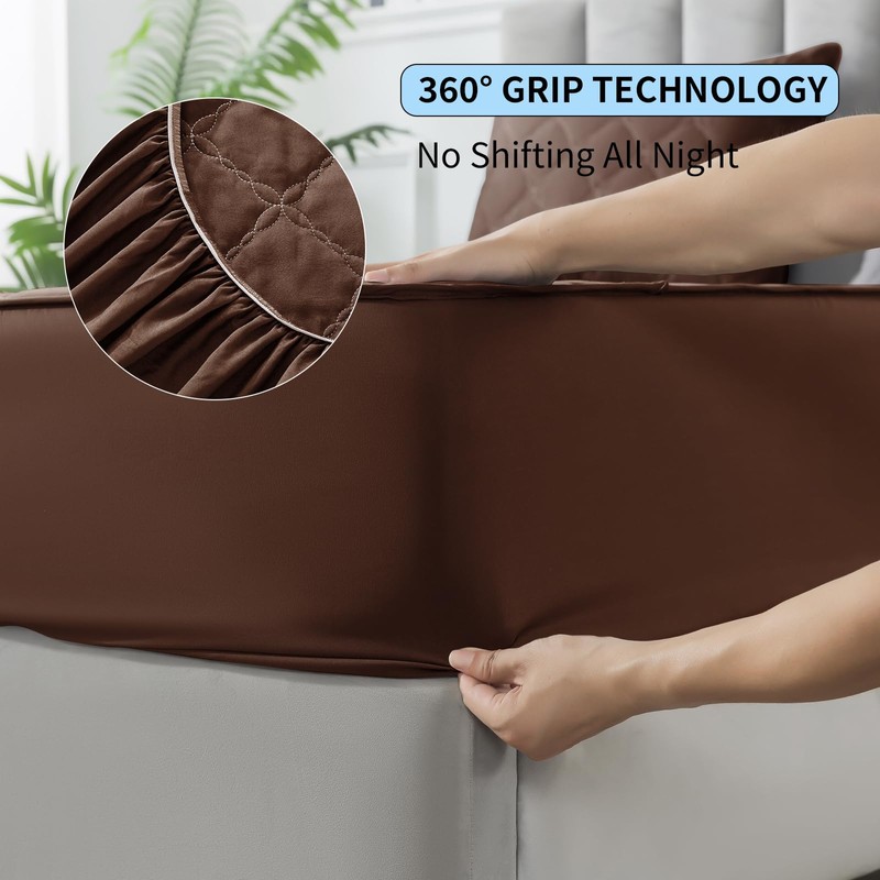 Waterproof Mattress Protector - Premium Bedding Protection with Silent Fabric & Secure Fit for Kids, Pets, Adults (Chocolate, Full)