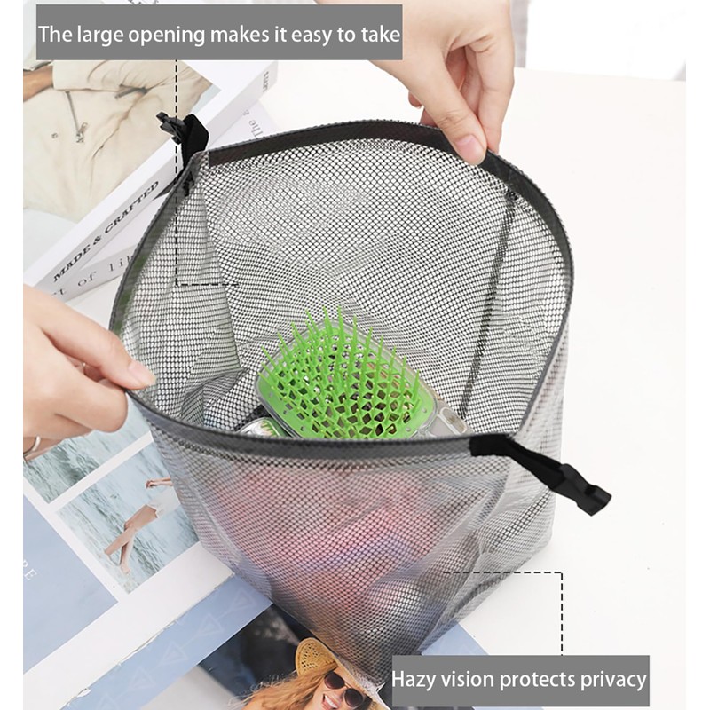- Waterproof Mesh with Clear Aesthetic: Made from soft, breathable, and water-resistant mesh—lightweight and quick-drying, perfect for a clean, modern lifestyle.